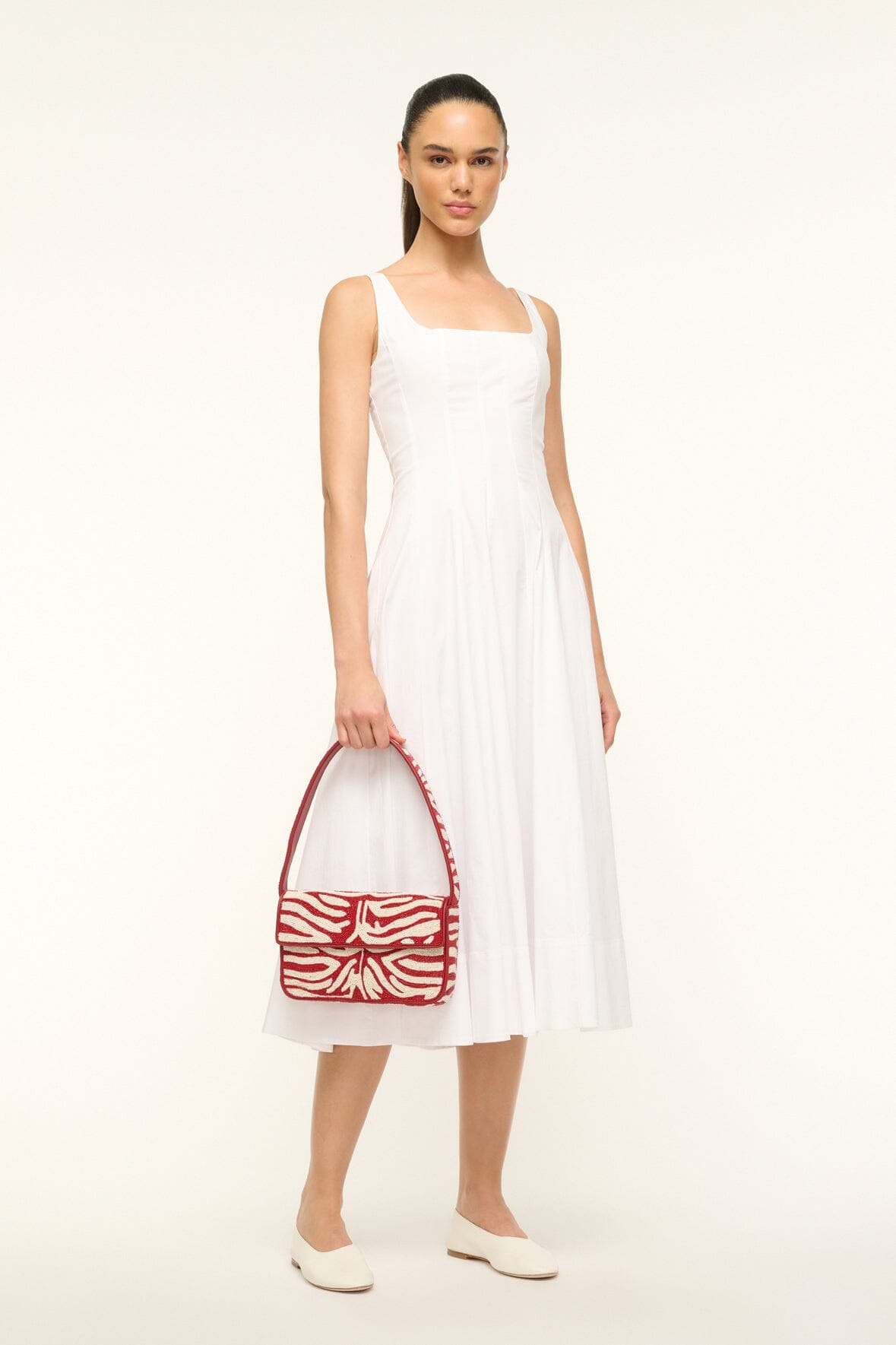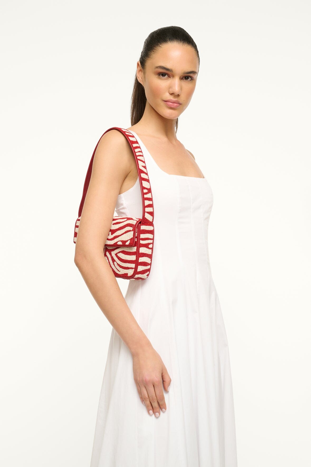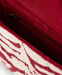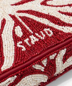 The Tommy is a hand-beaded shoulder bag with vegan leather piping. This style features a single flap closure, inner zip pouch and magnetic pocket on the back.