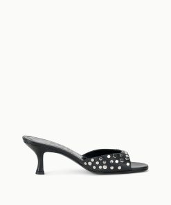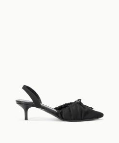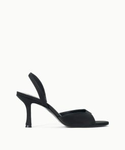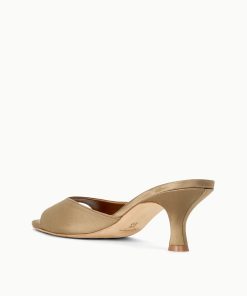 An open-toe mule featuring a satin upper, the Brigitte is an essential kitten heel for versatile dressing.