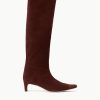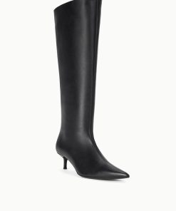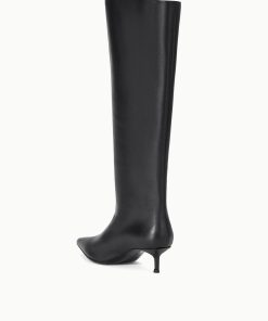 The Sebastian Kitten Heel Boot is a nappa leather, knee-high boot with a pointy toe. They can be worn casually or dressed up for a night out.