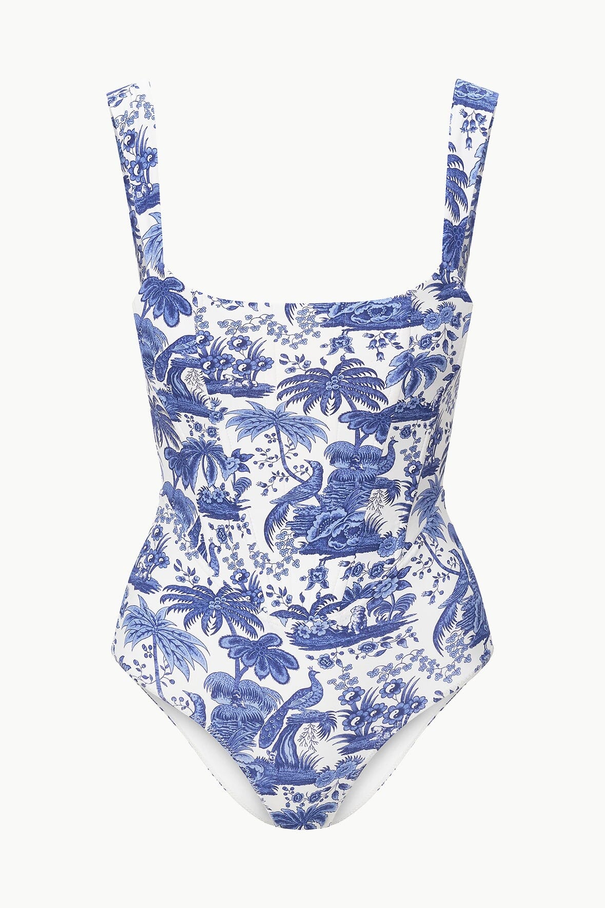 The Adelaide is a new one piece swimsuit with corset-style boning throughout the chest and torso. This style features zipper at the back and supportive shoulder straps.