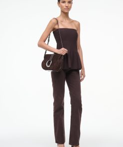 The Bella Saddle Bag is a suede flap closure bag featuring our signature hardware and an adjustable long strap. The Bella has an interior zip pocket and can be worn as a crossbody or on the shoulder.