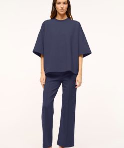 An oversized crewneck shirt in our ponte fabric with a rib neck trim. The Capsule Top is a perfect travel day essential when paired with our Knack Pant.