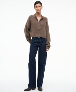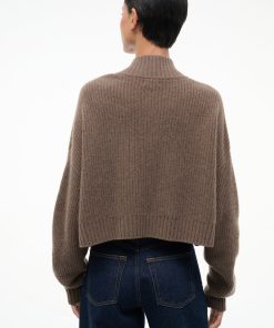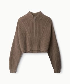 The Cropped Hampton has been updated in a chunky cashmere knit with a half-zip detail down the front.