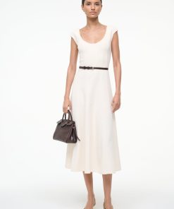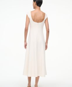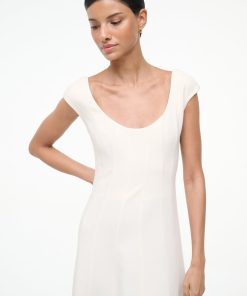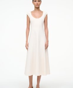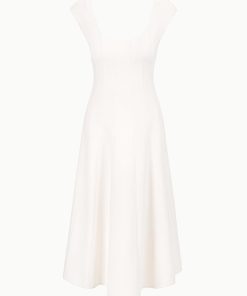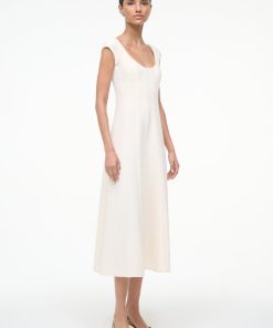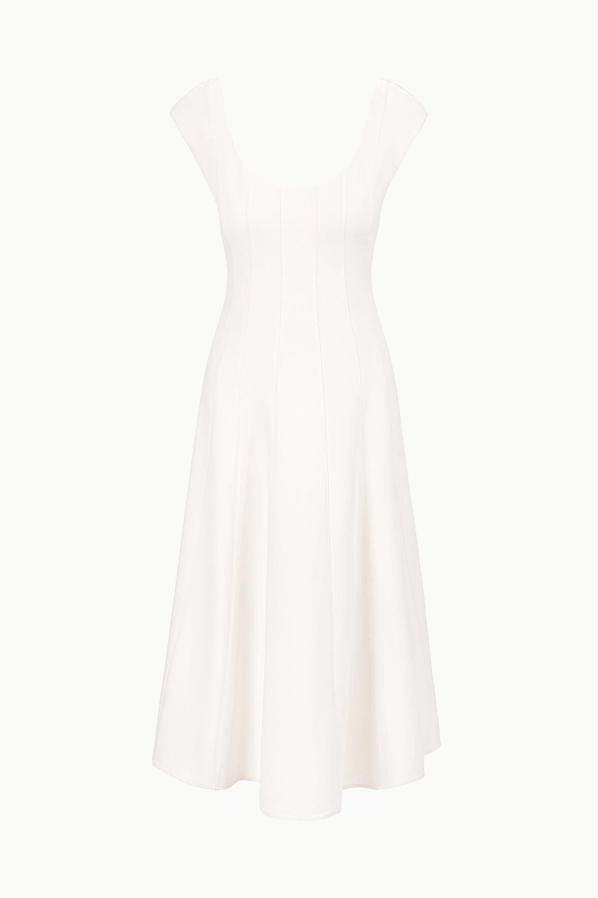 A new flattering dress silhouette, inspired by the seaming on the Wells Dress, the Charlotte is a scoop neck midi dress with corset seams through the waist, flowing to an a-line skirt.