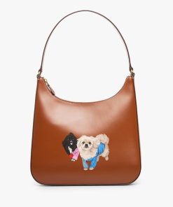 The Alec Bag features a zipper closure, antique gold hardware, and suede lining.