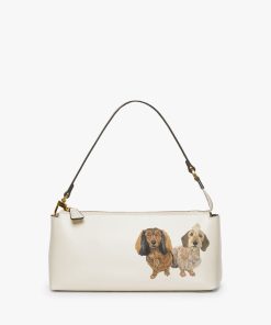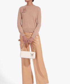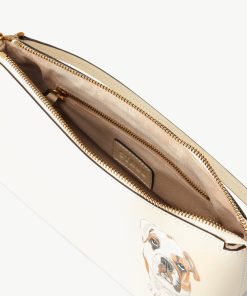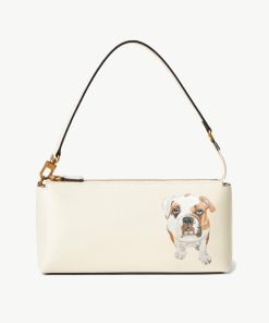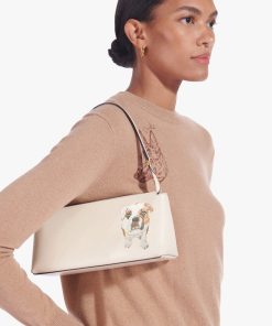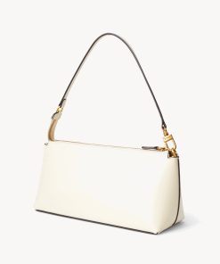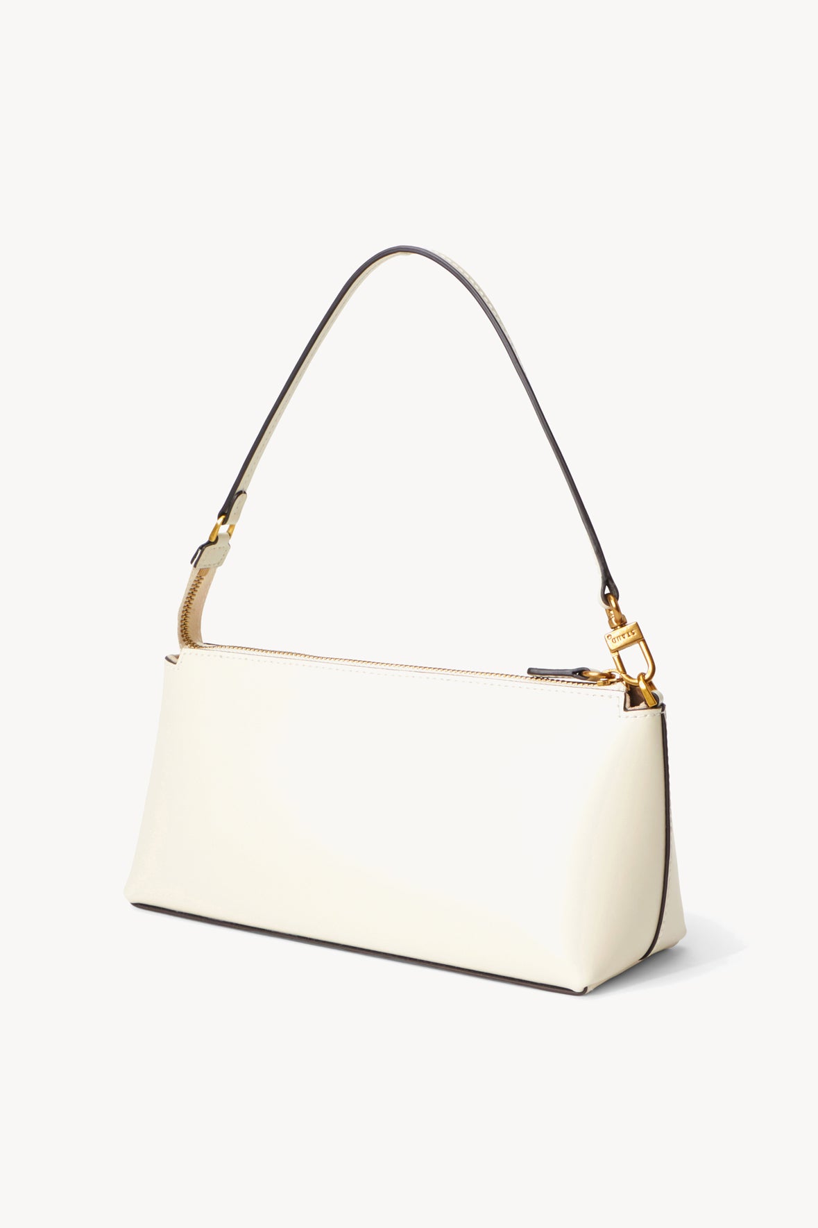 The Kaia Bag features a zipper closure, antique gold hardware, and suede lining.