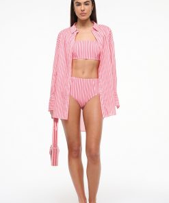 A classic bikini bottom, the Devon is high-waisted with moderate back coverage. Pair with the Lulu Bikini Top for a matching set in our seasonal Montauk Stripe.