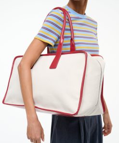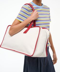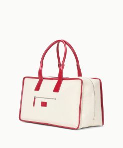 The Dude Travel Bag is a weekender bag crafted from a structured canvas with a leather trim. This bag features handles that fit comfortably over the shoulder and has a front slip pocket, perfect for your phone or passport. With a full two-way zipper, this style opens wide for easy packing and has interior zipper pockets and open pockets for easy organization.
