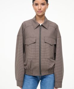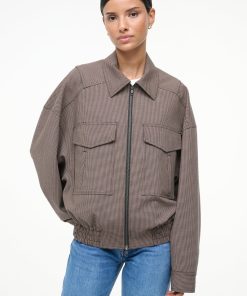 The Eugene Jacket is a bomber style jacket crafted in a wool blend. This style features a front zip and front pocket detailing.