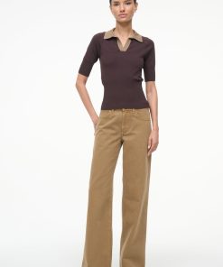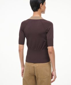 The Gene Top is a compact yarn fitted polo top with a mid length sleeve and contrast collar.