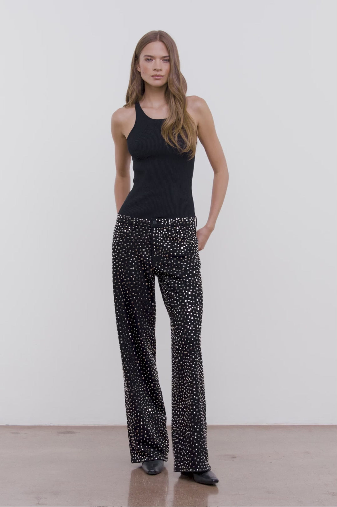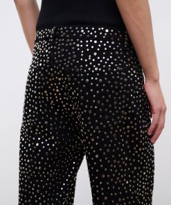 The Gus Studded Jean has a slouchy, relaxed fit with a ‘90s-inspired mid rise waist and a slight drop crotch. Cut in rigid denim and featuring all-over studs, it’s designed with an extended inseam for pooling over heels or cuffing. Complete with flattering V-shaped yoke at the back, antique-finish hardware and logo-embroidered zip fly.