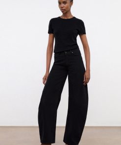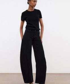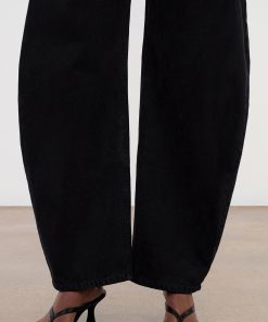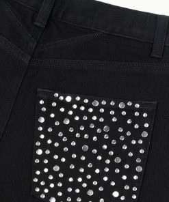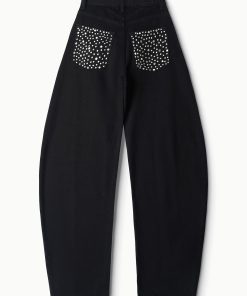 The Jackson Studded Jean is a dramatic barrel-leg silhouette with a flattering V-waist that sits high on the hip and an embellished studded back pocket. Cut in rigid denim with antique-finish hardware, it’s detailed with a cinching V-shaped yoke at the back and logo-embroidered zip fly.