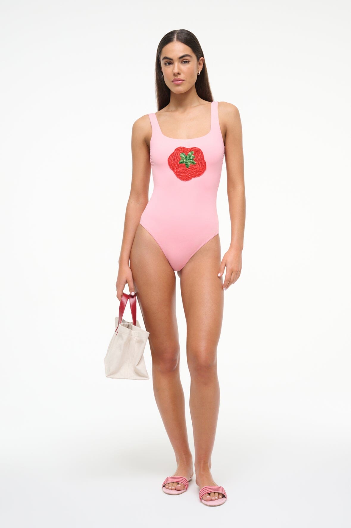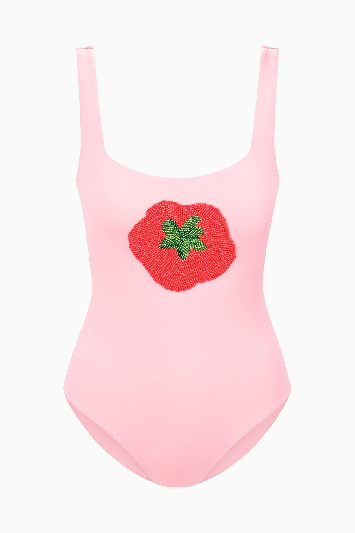 The Lea One Piece is a novelty one piece featuring our seasonal tomato print beaded at the front.
