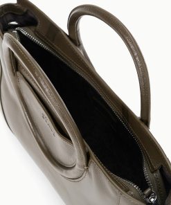 The Maude Mini Satchel is the newest addition to the Maude family. This style features rounded handles and a removable shoulder strap. It has a front pocket that is perfect for a phone and a zip closure.