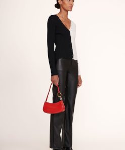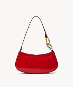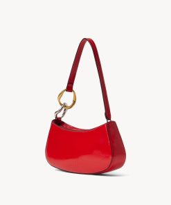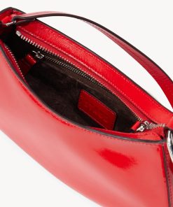 The Ollie Bag is a mini shoulder bag made out of polished leather. This style features a hardware design on the strap and a zip closure.