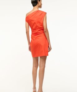 The perfect mini dress to wear dressed up or down, featuring soft ruching detailing throughout the bodice and an off the shoulder look. This style is made in our cotton poplin fabric.