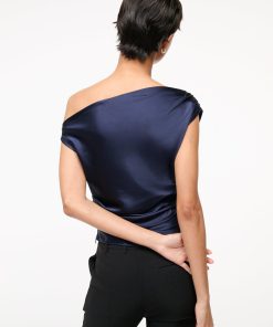 An off-the-shoulder top crafted from a silk satin fabric that offers some stretch for added ease. The Phare Top features a drapey yet fitted silhouette for any occasion.