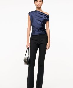 An off-the-shoulder top crafted from a silk satin fabric that offers some stretch for added ease. The Phare Top features a drapey yet fitted silhouette for any occasion.