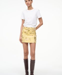 The Reese Mini Skirt is a fitted mini crafted in our brocade print jacquard. This style features a belt detail and can be worn with the Jeanette Top for a matching look