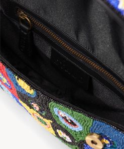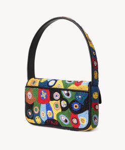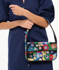 Our best-selling bag in a multi-color beaded design. The Tommy is a hand-beaded shoulder bag with vegan leather piping. This style features a single flap closure, inner zip pouch and magnetic pocket on the back.