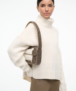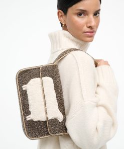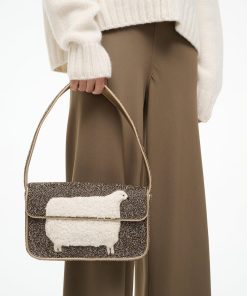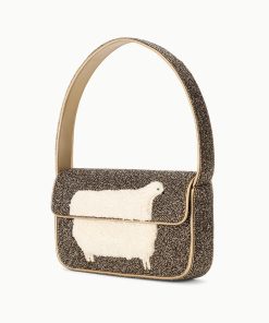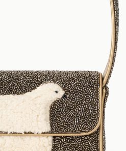 Our best-selling, hand beaded Tommy Bag is updated for Fall in a seasonal sheep pattern. This style is fully hand beaded and features a magnetic snap closure and an open back pocket.