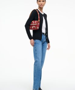 Our latest limited-edition Tommy features a playful seasonal print. The Tommy Bag is a hand-beaded shoulder bag with vegan leather piping. This style features a single flap closure, inner zip, and a back slip pocket.