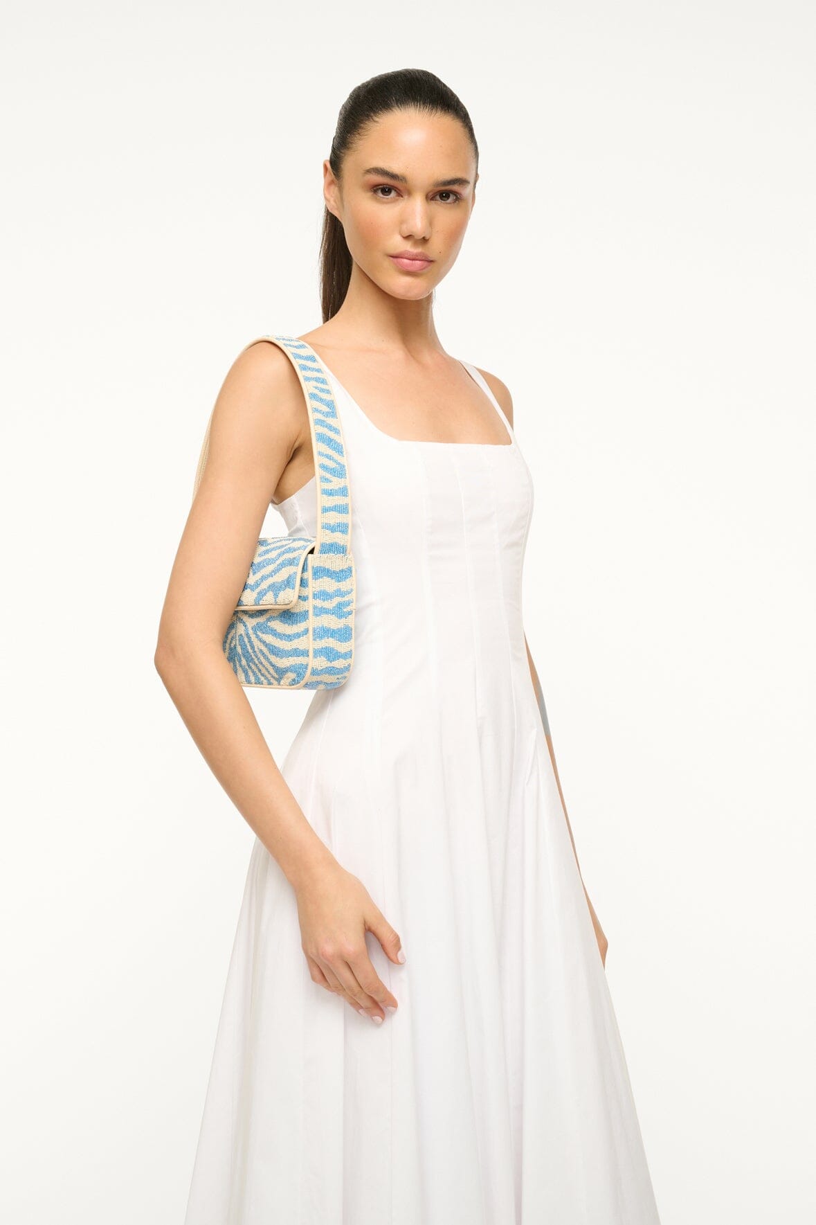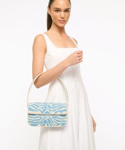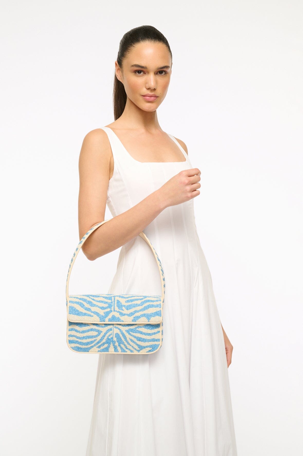 - Hand Beaded Shoulder Bag in Light Blue Cream