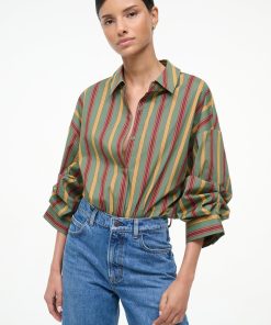 A cotton poplin shirt bodysuit, the Traverse takes the guesswork out of styling an oversized shirt by offering a fixed rolled cuff and adjustable elastic bottom.
