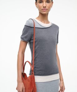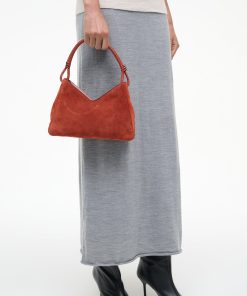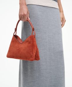 - Suede Shoulder Bag with Removable Crossbody Strap