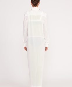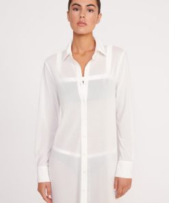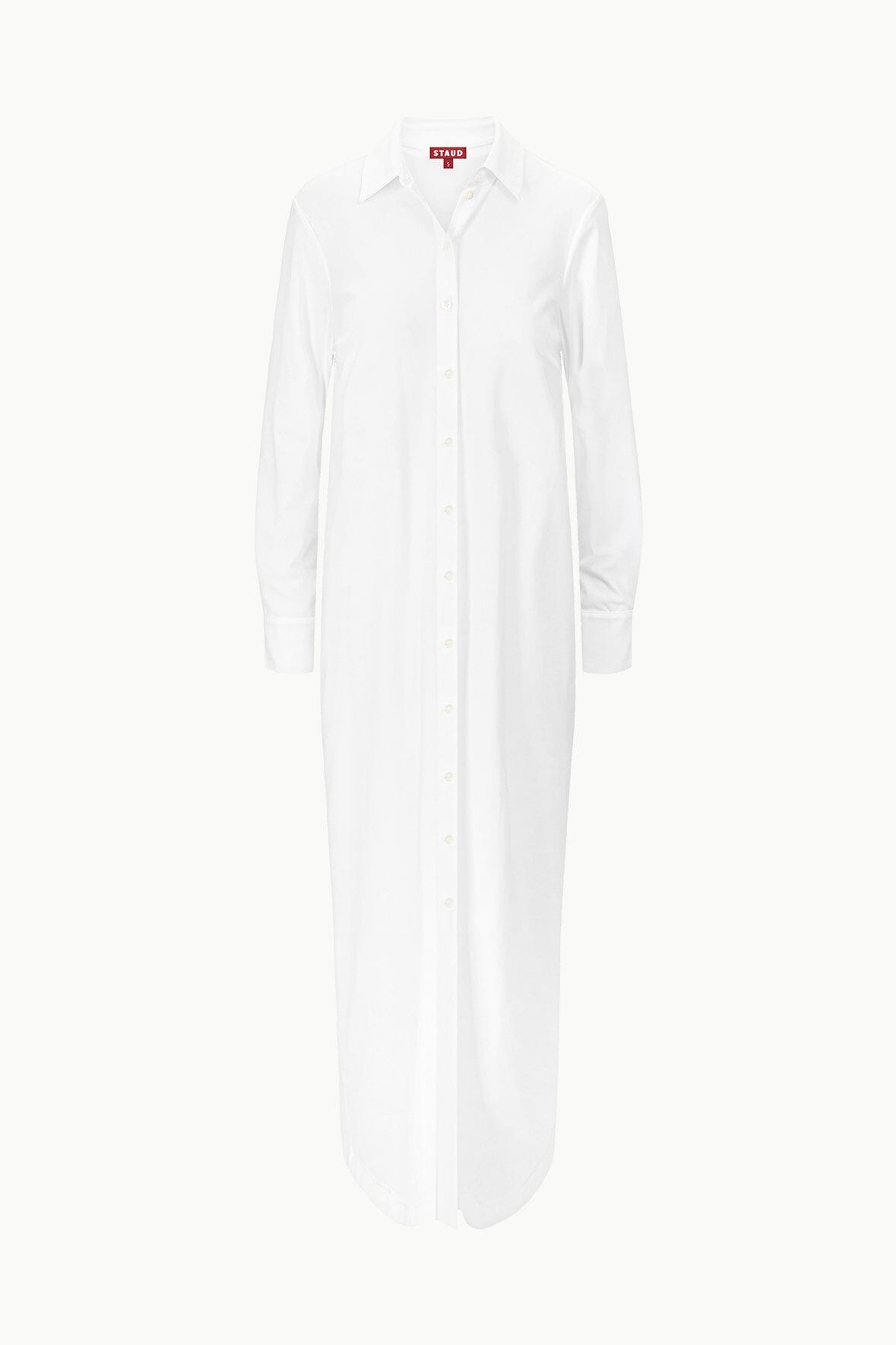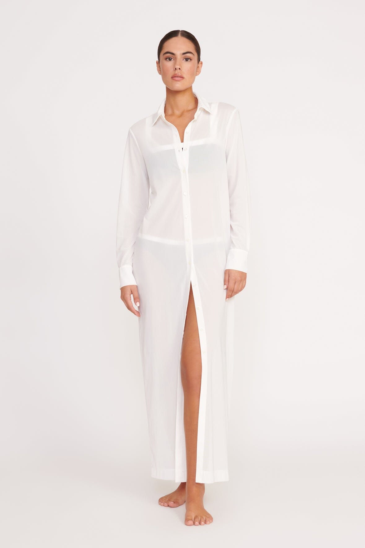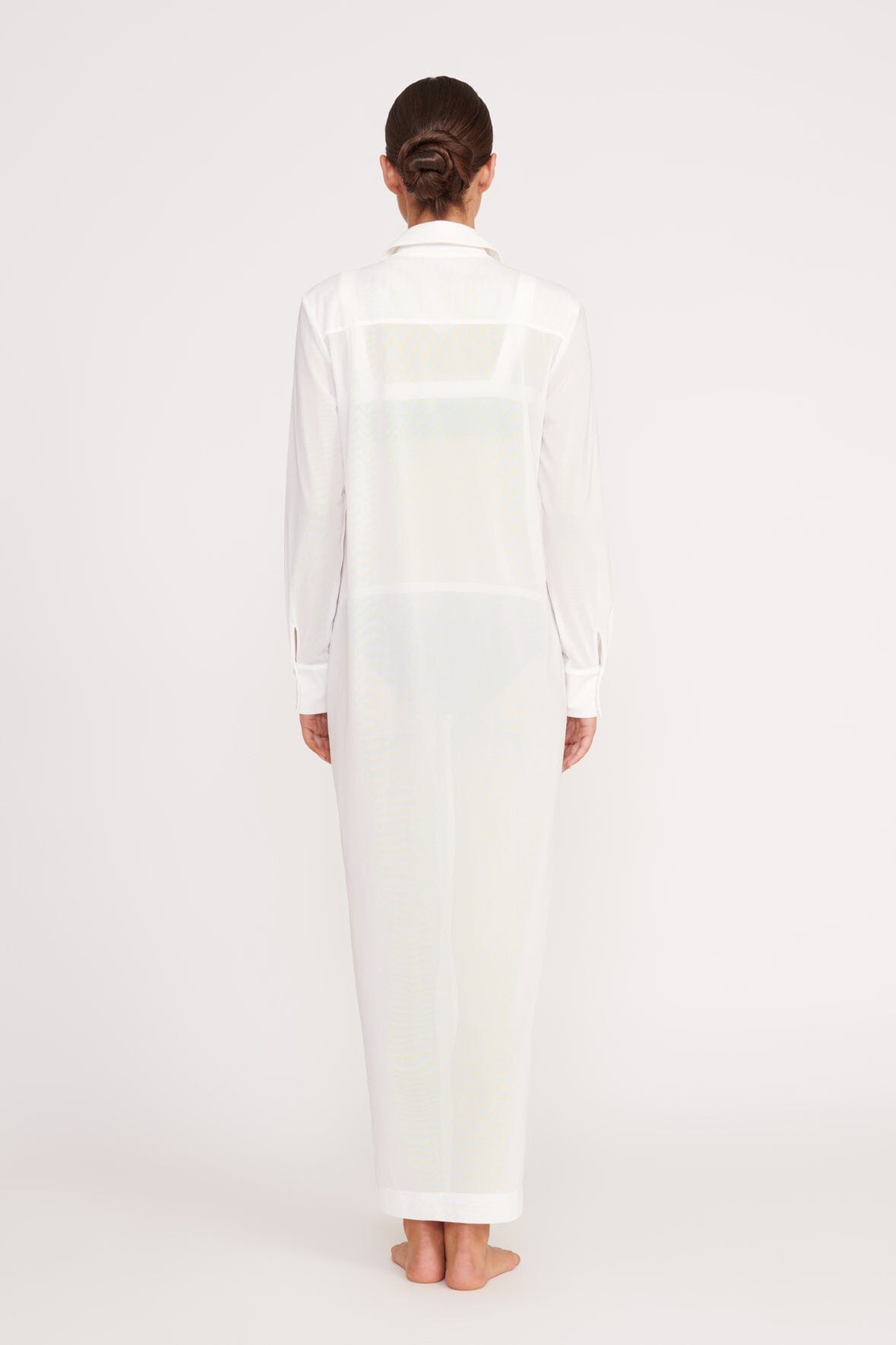 The Vita Dress is a swim coverup in our stretchy power mesh. Slightly sheer, with a button down front and a straight fit; this style pairs well with STAUD SEA swimwear.