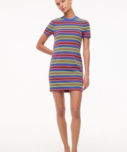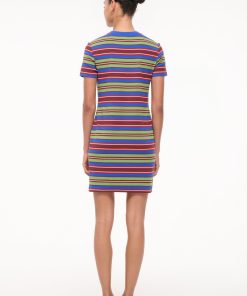 A fitted, short sleeve mini dress fashioned from a stretchy cotton jersey. The Wade features a vintage-inspired striped pattern in an easy crewneck tshirt silhouette.