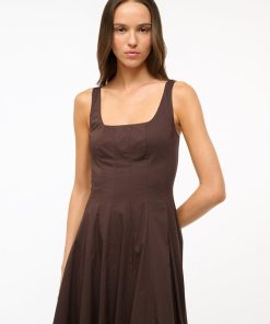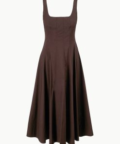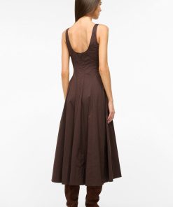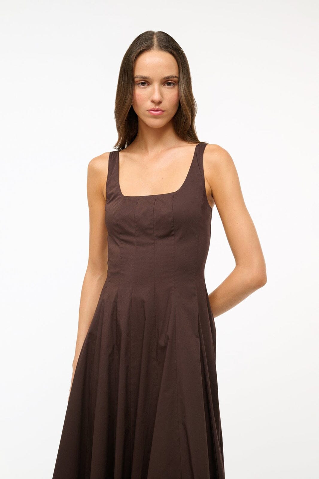 The Wells Dress features a corset-style panel construction to create a flattering, fitted shape through the waist and a full skirt which hits just below the knee. Constructed in lightweight cotton poplin.