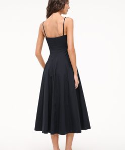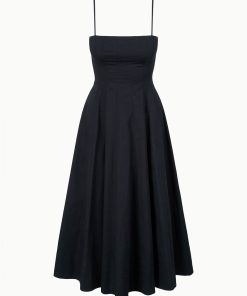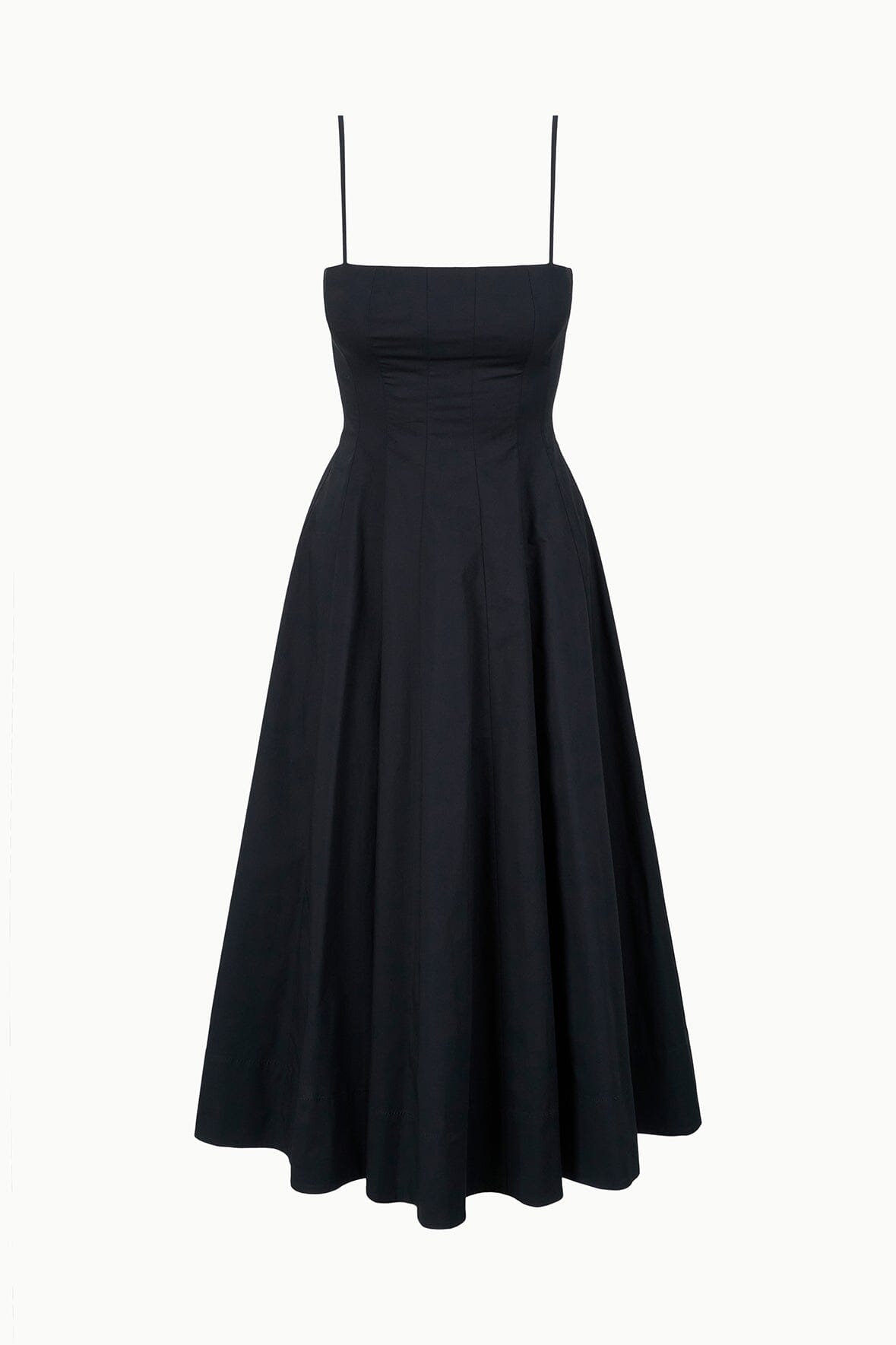 Introducing the Wylie, our newest midi dress crafted in our classic cotton poplin fabric. This style features a corset-style panel construction as seen in the Wells Dress, spaghetti straps and a straight neckline.